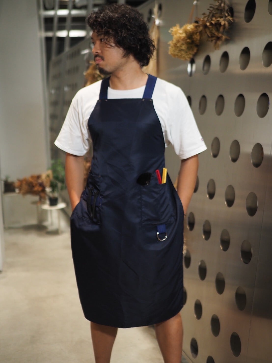 有るようで無かったこのエプロンはカラーリストの問題を解決する多用途なディティールが盛り込まれた一品。着用感はまるでお気に入りの服の様。